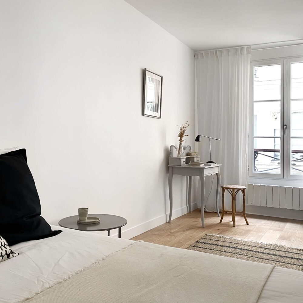 Niché rue Chapon, au cœur du quartier historique du Marais, ce charmant deux pièces de 52 m2, donne sur la cour intérieure de l’immeuble, à l’abri du bruit de la ville.